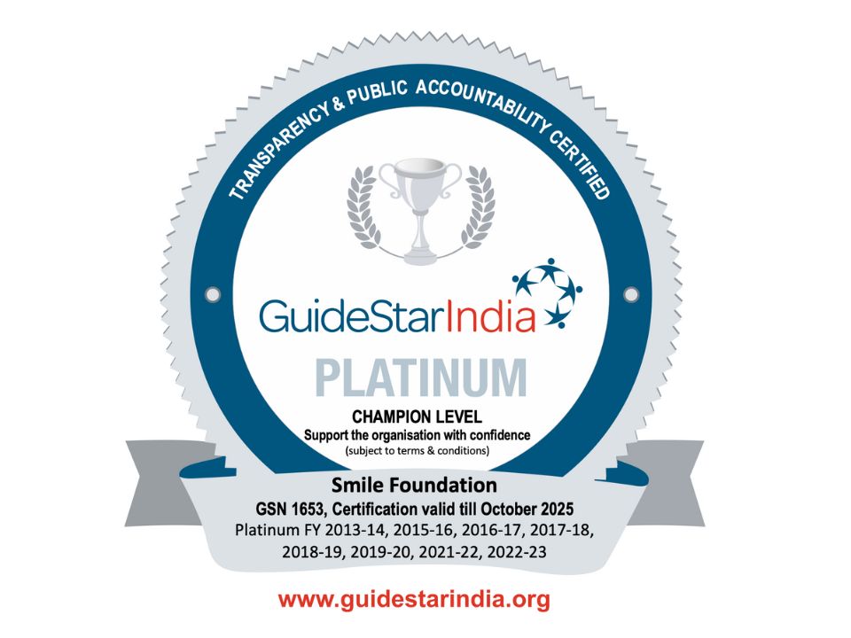 Smile Foundation has been accredited as a Guidestar India Platinum