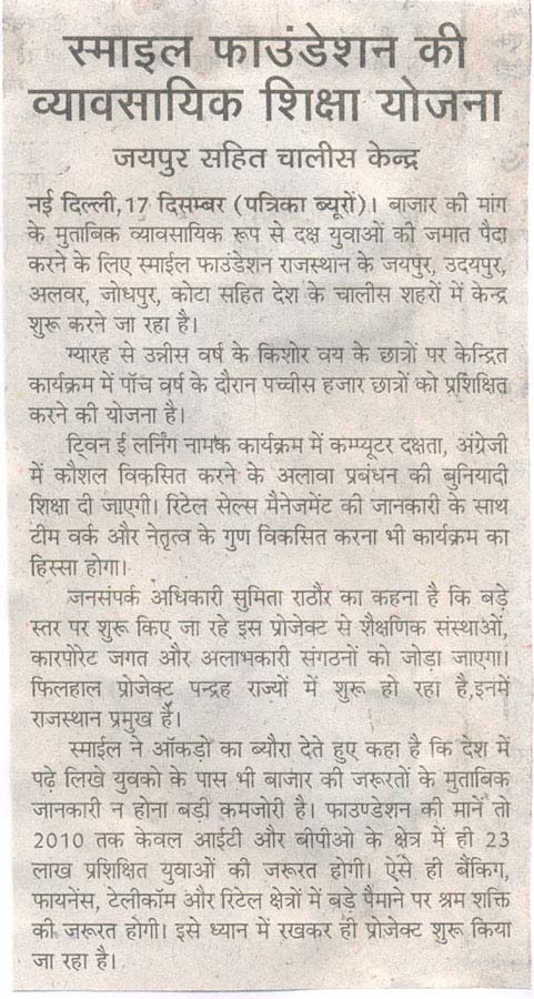 1. General browsing of Smile Foundation website is anonymous and it does not register the user’spersonal information except the time, date and place of visits and the name of internet service provider. This data is used only for statistics and diagnosis.