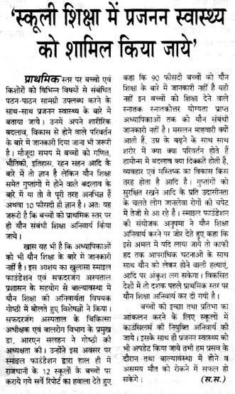 Schooli Shiksha Mein Prajnen Swasth Ko Shamil Kiya Jaye