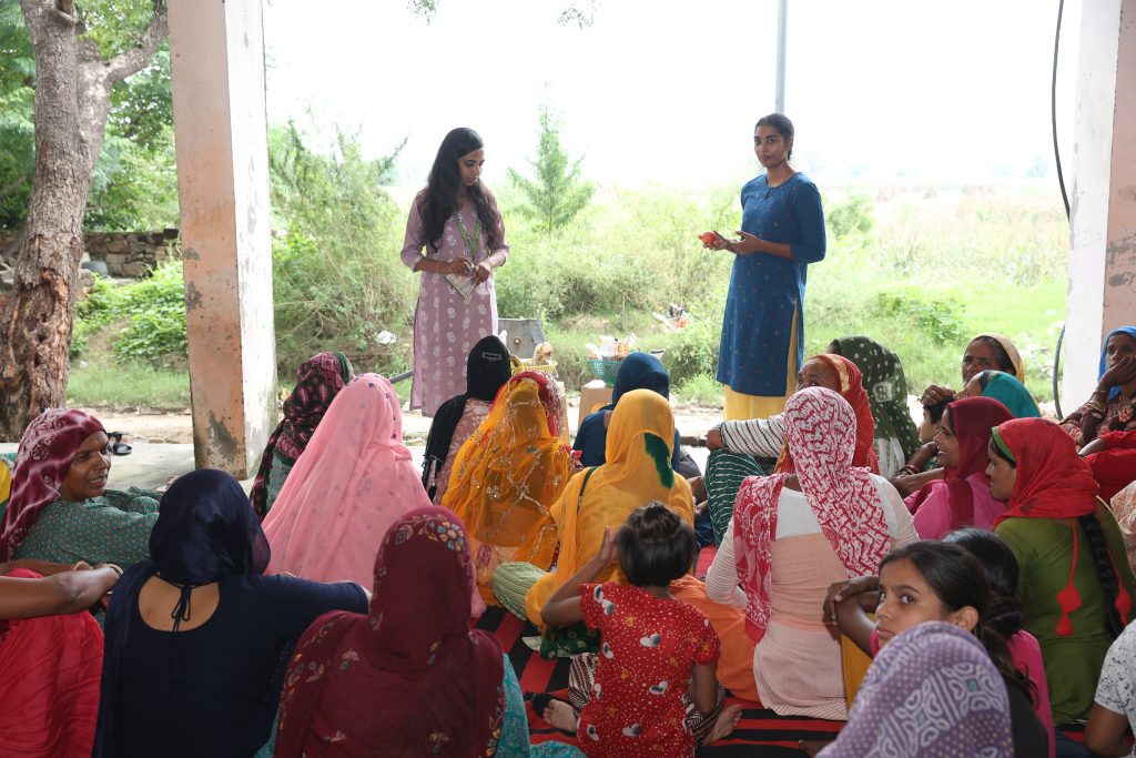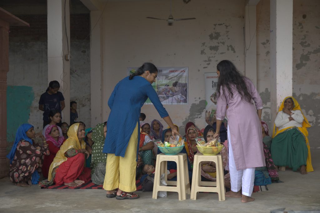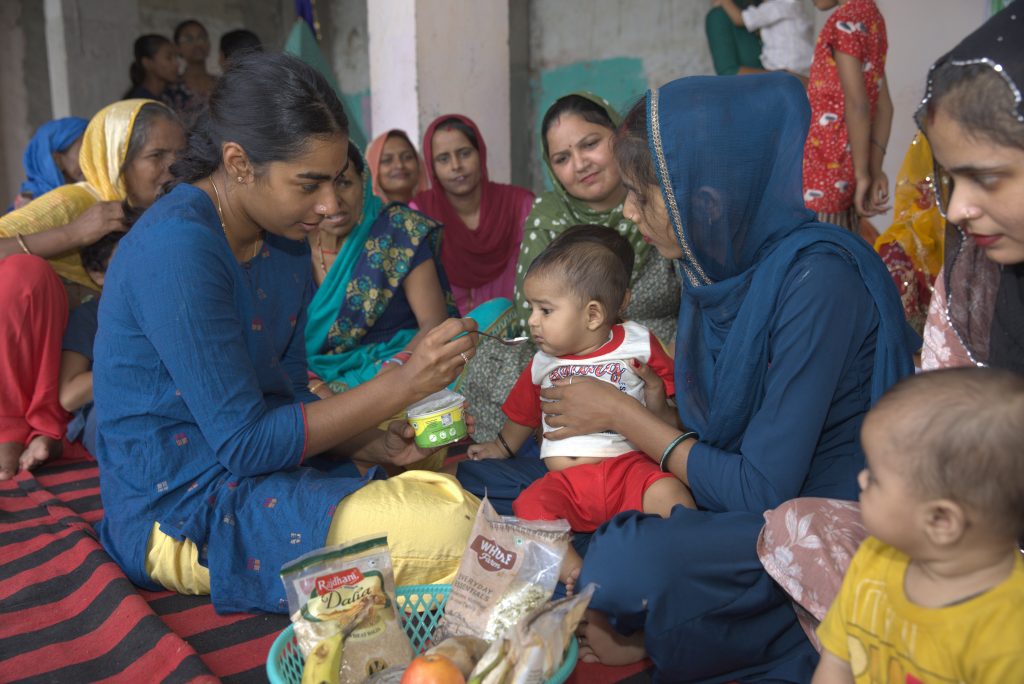 Last week, I joined the team on my very first field visit to Bhiwadi, Rajasthan, a town just across the state border, two hours from Delhi. We drove through a monsoon-soaked landscape and I was filled with anticipation for what awaited us. When we arrived, dozens of women and children were already gathered, waiting patiently for the Annaprashan ceremony. I had never experienced this tradition before. Annaprashan, literally “the first feeding of food,” is celebrated when babies turn six months old, the age when they begin eating solid food. That day, two mothers were there with their babies, dressed more elaborately than the others in lehengas, marking the significance of the day. Photographs were taken, smiles were exchanged and then the ceremony began.