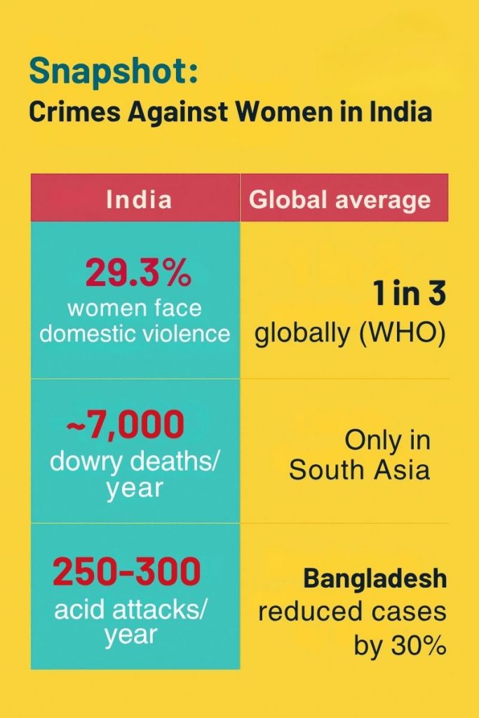 For example, India – like neighbouring Pakistan and Bangladesh – has historically high rates of acid attacks and honour killings. Notably, Bangladesh’s strict acid laws have led to a 20–30% decline in attacks, a success India still strives for.