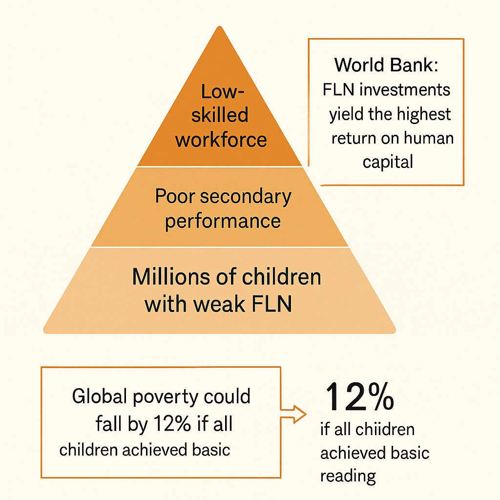 Economically, the stakes are immense. The World Bank estimates that if all children in low- and middle-income countries, including India, acquired basic reading skills, global poverty could be cut by 12 percent. In India, where millions will join the labour force each year, a failure to achieve FLN translates into lost productivity, lower wages and weaker competitiveness.