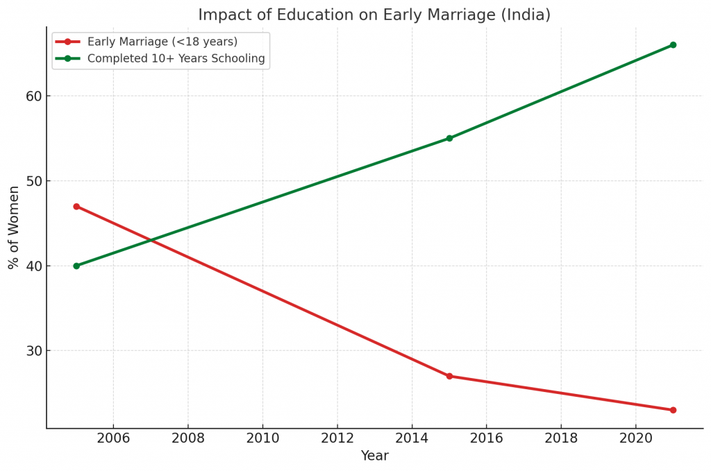 Educated women are more likely to delay marriage, negotiate safer relationships, and resist societal pressure that normalizes violence. Moreover, education increases employment opportunities and financial independence, key factors in reducing vulnerability to abusive relationships.