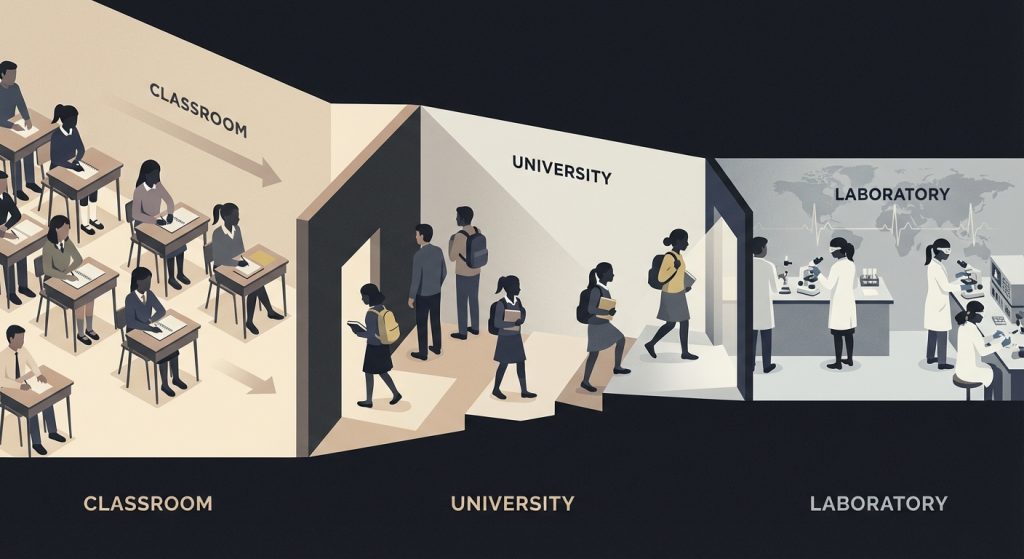 The distance between a rural classroom and an international laboratory is considerable. Bridging it requires investment at each stage — in foundational education, in health stability, in safe infrastructure and in inclusive institutional cultures.