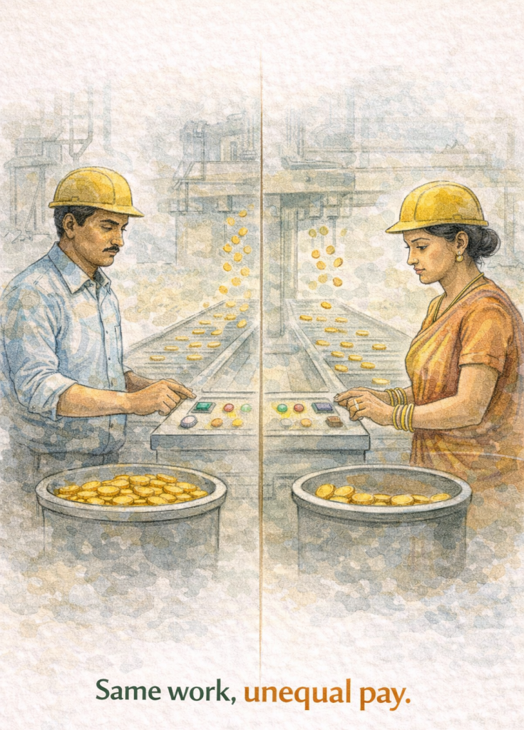 The gender wage gap remains one of the most persistent challenges in India’s labour landscape. Although the gap has narrowed over time, women still earn approximately 20–30% less than men on average.