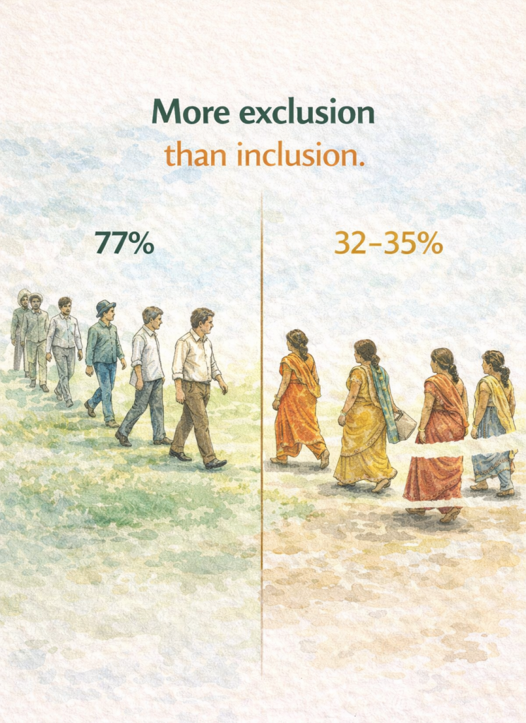 Women’s participation in India’s workforce is shaped by deep-rooted social and cultural norms. Many women engage in unpaid labour such as household work, caregiving and agricultural assistance, which remains unaccounted for in official statistics.