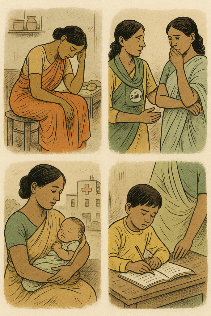 In conversations with frontline workers across rural Rajasthan, urban Maharashtra and tea estates in Assam, one pattern repeats itself: women who are overwhelmed, anxious, depressed — but almost entirely unseen by the system. A young mother in Jaipur, cradling her newborn, quietly admits she hasn’t slept in days and sometimes feels frightened of being alone with her baby. A tribal woman in Odisha says the hardest part of pregnancy is “thinking too much,” but she never told the ASHA worker because “everyone has problems.” A migrant worker in Mumbai breaks down because she is still grieving the loss of her first child, even as she prepares to deliver her second.