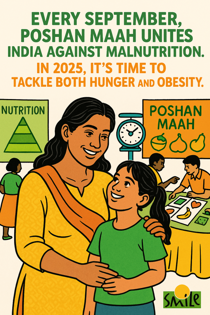 Every September, India observes Poshan Maah – a campaign to improve nutrition awareness, promote healthy practices and encourage community action. Poshan Maah 2025 is particularly relevant because it stresses convergence: linking food security, health, sanitation and education to fight malnutrition in all its forms. That aligns perfectly with Smile Foundation’s approach. Whether through daily meals at Mission Education centres, kitchen gardens for families or anaemia screening for adolescent girls, Smile’s interventions are real-life examples of how awareness plus action can turn the tide against both undernutrition and obesity.