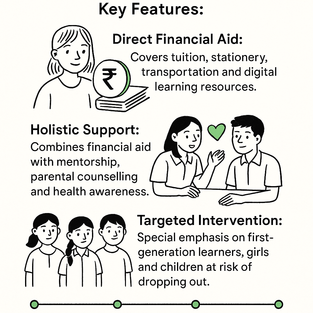 According to UNESCO, 40% of Indian secondary school students drop out before completing their education and financial distress ranks as one of the top three reasons. Scholarships, particularly those designed to meet direct and indirect costs of schooling, can act as a potent deterrent to dropout.