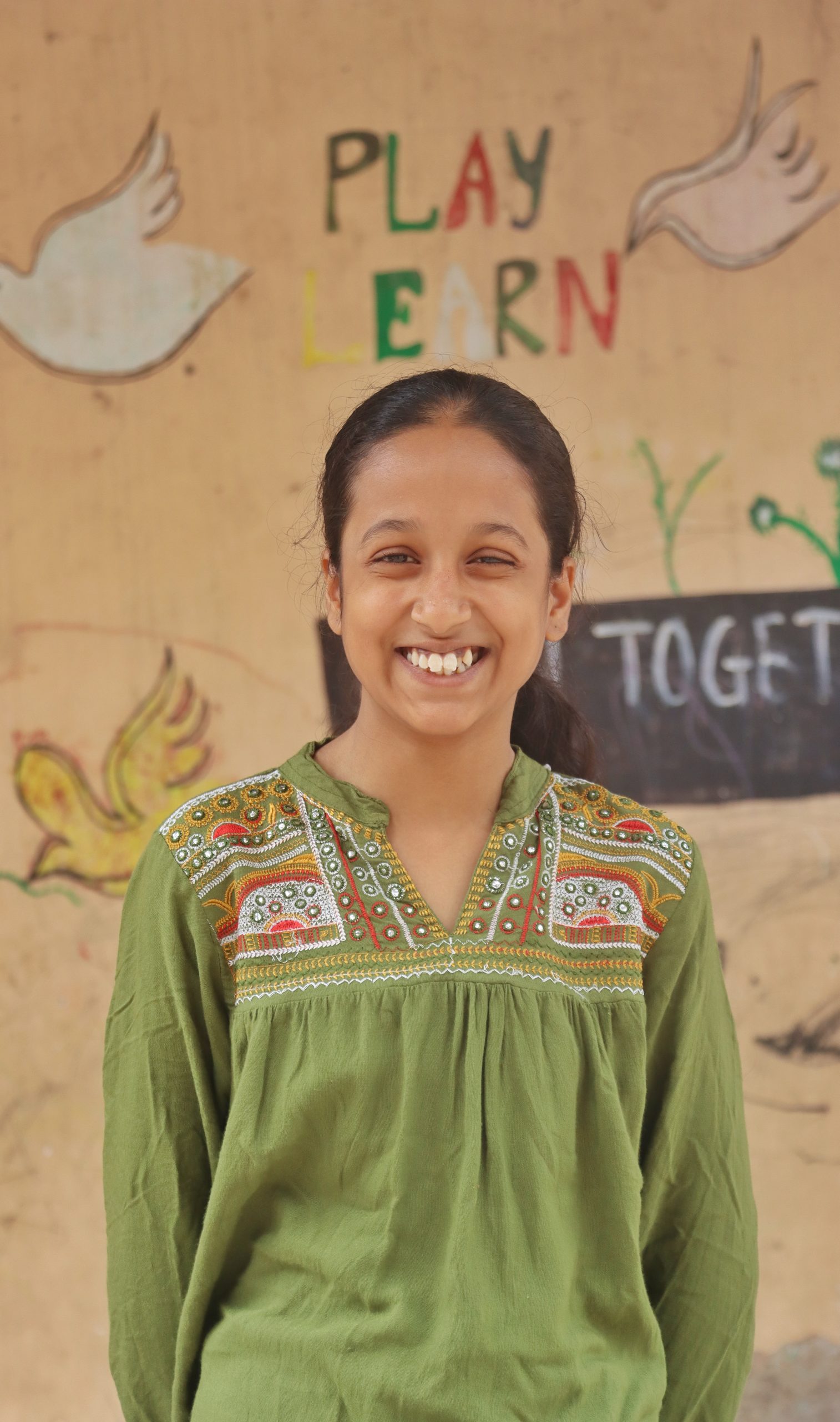 Oh, I love being able to help other kids at the center. It’s like being a big sister to them! They always come up to me when they want any help with their Maths or History questions. I enjoy my studies, I actually like to study a lot. When I first joined the centre last year, I was not very good at Maths but we had a teacher who explained the concepts to me and motivated me and since then I developed interest in Maths and now when I help these other kids with the same subject, I feel very good. It makes me very happy when my teachers appreciate me and I get good marks.
