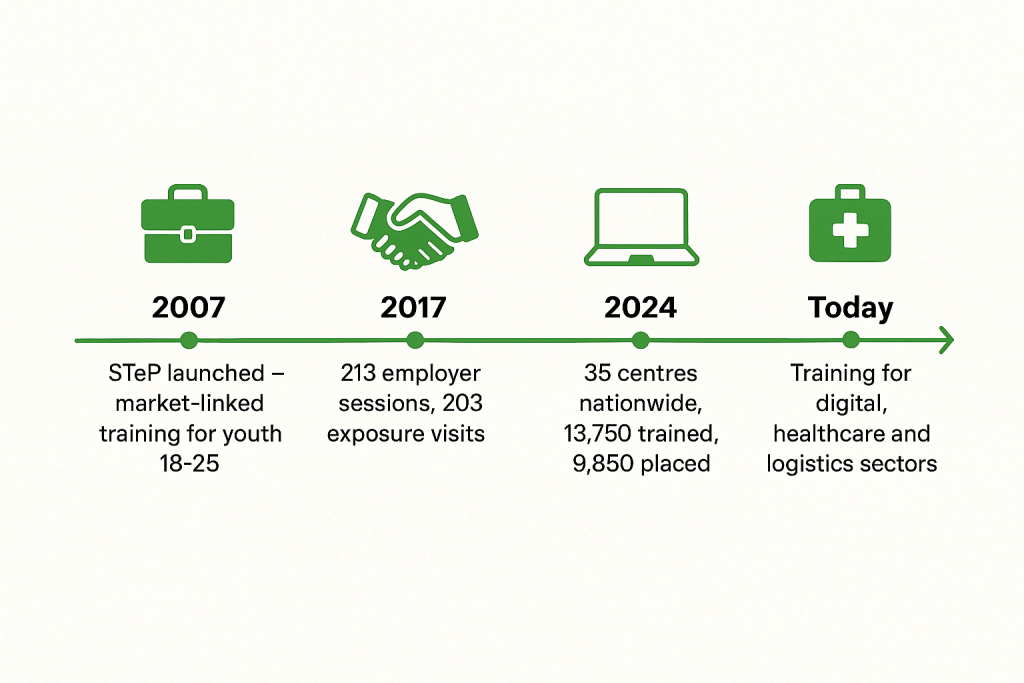 What began with a few centres has now grown into a national network, training tens of thousands of young people and helping many secure employment in respected brands.