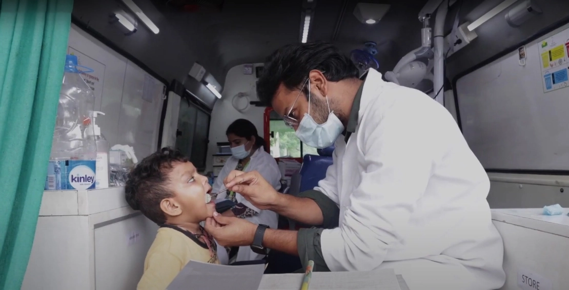 To make dental treatment affordable and accessible and to address the gaps existing in dental healthcare at the community level Smile Foundation joined hands with GlaxoSmithKline Asia Private Limited (now Haleon). The dental health units have been providing diagnostic as well as curative services through roster based OPDs. They organize regular Information, Education and Communication (IEC) activities to enhance health seeking behavior. Another very important component of the Smile on Wheels Dental HealthCare is the School Oral Health Programme that includes awareness sessions on Oral Health and Hygiene followed by regular dental check-ups.