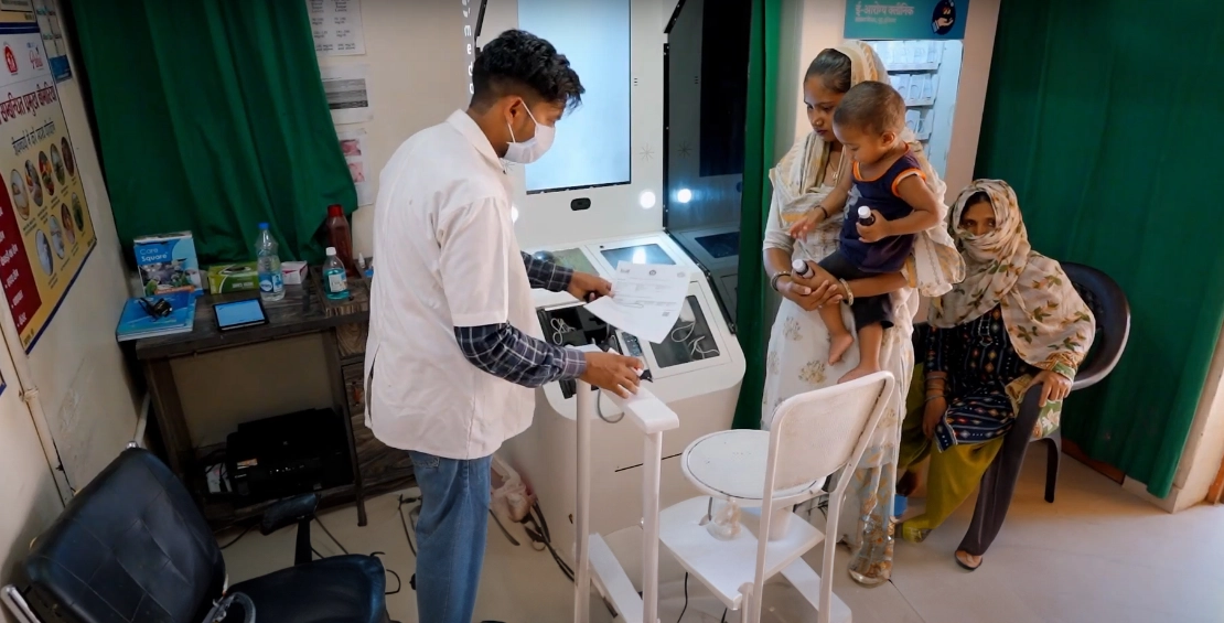 ReMeDi: An integrated telemedicine solution that enables teleconsultation where doctors are remotely connected to see the patient, talk to the patient, and can access past medical records. The device enables doctors to conduct over 30 point-of-care diagnostic tests in real-time. Results from these tests are transmitted automatically to the EMR. Doctors can prescribe medicines and also refer for follow-up visits and continuous care.