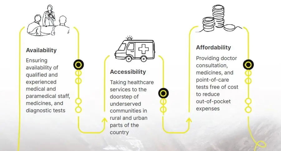 The intervention works on the principle of the 3A Model – Availability, Accessibility, and Affordability, ensuring that medical services, medicines, and diagnostics are not a privilege but a right within reach of every family.