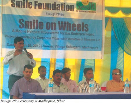 Smile Foundation launched its first mobile hospital Smile on Wheels for the state of Bihar with support from Siemens Ltd. This mobile healthcare initiative is providing comprehensive healthcare services for the underprivileged in the villages of Madhepura district of Bihar. The project is a first of its kind in the state and is benefiting over 25,000 people in 10 villages of Madhepura, namely Sahugarh-1, Sahugarh-2, Bhatutola, Mithai, Balam, Shripur, Chakla, Sabela, Puniyahi and Sukhasan. With the launch of this new project, Smile Foundation now has 20 mobile hospitals operational across India.