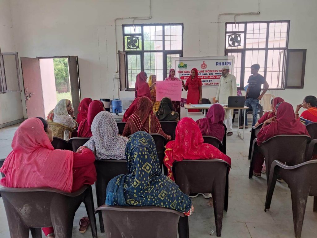 In collaboration with the Health Department of Haryana, Smile Foundation's Smile on Wheels mobile healthcare programme organized two-day training for front line workers at CHC Punhana in the aspirational district of Mewat. During the training, 30 Front Line Workers participated actively and increased their awareness on various health-centric topics including newborn care, breastfeeding, Antenatal and Prenatal Care, Immunization, Government schemes, Nutrition, and precautions related to Malnutrition