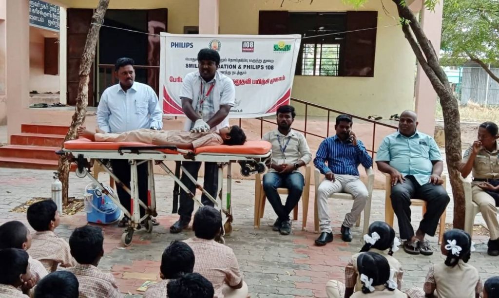 Smile on Wheels mobile healthcare programme conducted Disaster and First Aid Training for 250 Government School Students in Virudhunagar, Tamil Nadu. Equipping young minds with essential life-saving skills, the session covered basic first-aid techniques and instilled confidence in handling emergencies. By understanding the role of timely support during critical situations, students learned to minimize the impact of injuries and foster faster recovery. Through such sessions Smile on Wheels aims to encourage a health seeking behavior in the next generation.
