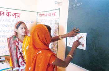 The centre has brought about an improvement in the functional literacy level among the women as they can now read and write Hindi and English alphabets and do counting of numbers. Some women can even read books with little assistance from the teacher.
