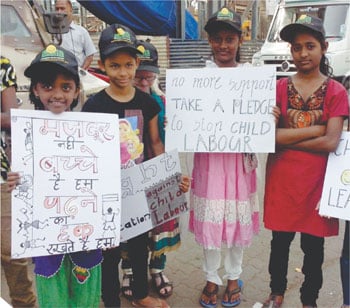 On the eve of World Labour Day, privileged children and volunteers came out in large numbers to take part in a multi-city public awareness campaign and draw attention to the issue of ‘lost childhood’. The campaign titled ‘Say NO to child labour, say YES to school’ was conducted at Bhavnagar in Gujarat, Panaji in Goa, and Mumbai and Nagpur in Maharashtra.