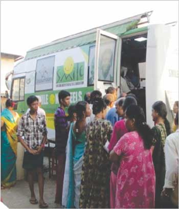 Such complementary health camps are organized regularly under the Smile on Wheels programme to meet the immediate healthcare needs of the marginalized community in remote rural areas and slums, with the belief that adequate awareness, diagnosis and timely care can reduce the incidence of morbidity and mortality, especially among children and women.