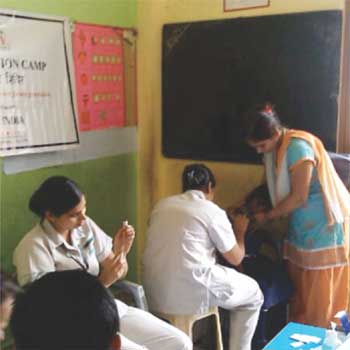 96 girl children benefitted from the camps as 78 received MMR (Measles, Mumps and Rubella) vaccination and another 18 received Typhoid vaccination. Also Vitamin D and De-worming tablets were distributed among students, with instructions to the mothers.