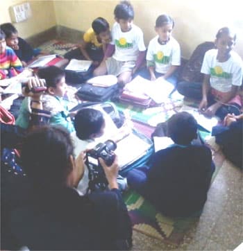 The children from the centre were interviewed about their interests and dreams and happily posed for the lens. At the end the Smile kids broke into an impromptu dance and were joined by students from Sri Shikshayatan.