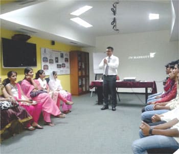 Mr. Khaja Ram and Miss Harsha from JW Marriott welcomed the students with training and motivational sessions, followed by a presentation on the history and work of the hotel at Juhu, Mumbai.