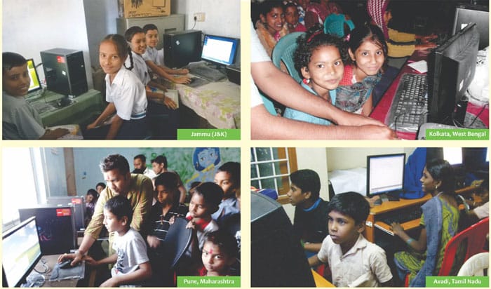 Computer Education projects have been set up in 54 select Mission Education programme centres of Smile Foundation. The centres are spread across Andhra Pradesh, Karnataka, Tamil Nadu, Goa, Odisha, Jharkhand, West Bengal, Chhattisgarh, Rajasthan, Delhi NCR, Uttar Pradesh, Haryana, Gujarat and Maharashtra, Jammu and Telangana.