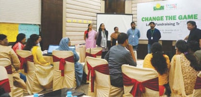 Grassroots NGOs from across India participated in the 5 day capacity building workshop on local fundraising. Leaders from these organisations discussed their challenges in raising support in communities where they work, and best ways to tackle these challenges. This session was part of Change the Game Academy, an international e-learning platform for grassroots NGOs created by the Dutch development agency Wilde Ganzen, which is being implemented by Smile Foundation in India.
