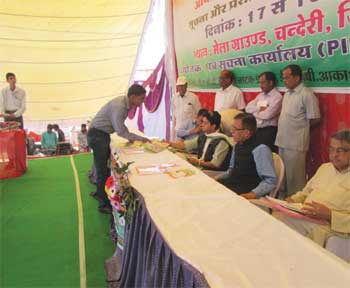 Smile Foundation participated in a three-day public information campaign ‘Bharat Nirman Jan Soochna Abhiyan’, organised by the Ministry of Information and Broadcasting at Chanderi, Ashok Nagar district in Madhya Pradesh. The programme was inaugurated by Union Minister of State (Independent charge) for Power Jyotiraditya Scindia in March. Around 30 stalls were put up to disseminate information among the rural population about the flagship programmes of the government of India as well as development initiatives of NGOs. On display were banners, brochures, information pamphlets regarding various development initiatives of Smile Foundation in the areas of education, healthcare, livelihood and empowerment of women and girl children. Movies regarding Smile Foundation’s initiatives were further screened for the people.