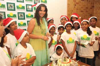 On the eve of Christmas, Tennis sensation Sania Mirza played Santa Claus to join the children of Smile Foundation for lunch at Barbeque Nation in Lokhandwala, Mumbai. The event sought to promote the spirit of giving and sharing among the privileged masses, inspiring them to act and make a difference in the lives of the underprivileged children. Bringing joy and smiles to the children’s faces, she happily participated in the games and activities along with them. The children also presented her with a memorabilia. She also released balloons with the message of ‘Be the Change’, with an appeal to the masses to come forward and take an initiative to make them smile.
