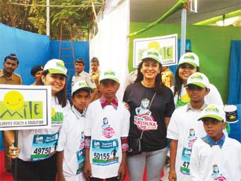 Bollywood actress Juhi Chawla joined 30 Smile Kids to cheer participants in the tenth edition of Standard Chartered Mumbai Marathon in January, who ran for the cause of sending every child to school.