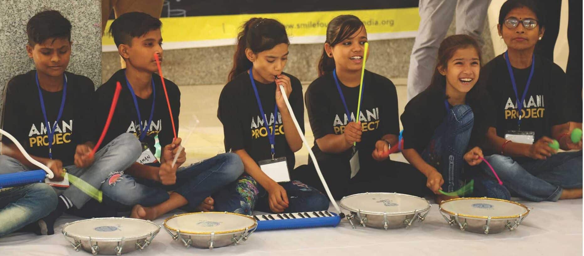 Chhavi and 300 other children are part of the ongoing Amani Project that combines learning theory from the Yale Center for Emotional Intelligence with music therapy and music-making. After a successful venture in the USA, South Africa, Tanzania, and Bagamoyo, the Amani Project was initiated in India by Children in Harmony in collaboration with Smile Foundation.