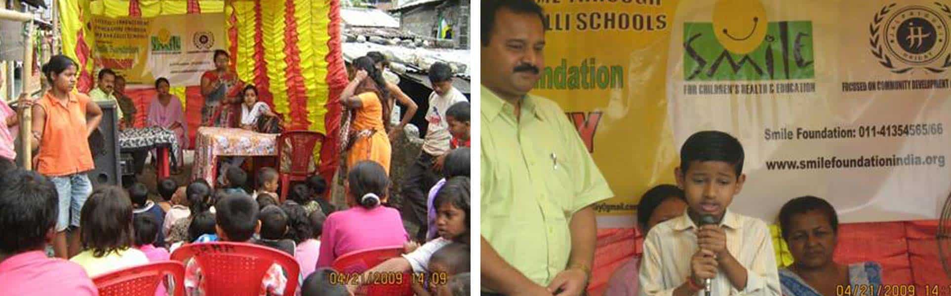 Smile foundation in partnership with Hriday at Jaigaon, Jalpaiguri has recently come up with a non formal school ‘Back to School’ for children of sex workers. An inauguration ceremony was organised for the purpose at 1, Tribeni Tole on April 21, 2009. At present, 80 children are enrolled in the school.