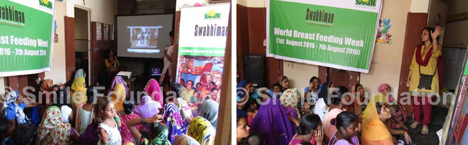 World Breast Feeding week was celebrated in the Sri Ram JJ Camp on the 4th of August, 2016. The day was celebrated with conducting a session on Importance of Breast Feeding by Dr. Vinita from St Stephens Hospital, followed by showing the short movie on importance of breast feeding, Amma Ji kehti Hain (UNICEF provided movie). The total number of participants were around 50 women.