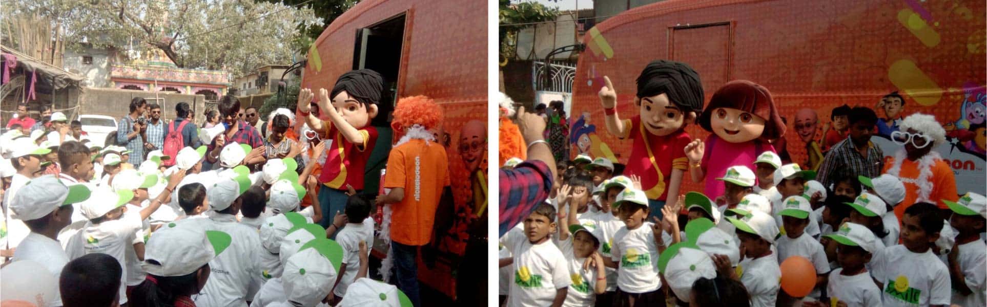 Nickelodeon TV character Dora and Shiva spent a fun filled day with children from a Mission Education centre at Mumbai. Both Dora and Shiva played with the children and clicked pictures with the children. It was a fun filled and exciting day for the children as they got to meet their favorite characters and interact with them. An outing as such does much good to the children and comes as a breath of fresh air by allowing the children to have fun outside of their classrooms.