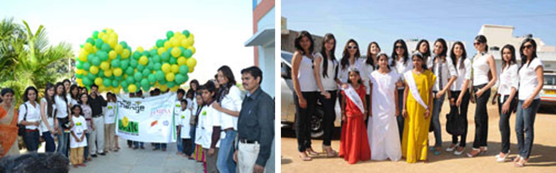 With festivity in the air and Christmas round the corner 12 beautiful finalists of Pantaloons Femina Miss India South 2011 visited a Mission Education centre of Smile Foundation and participated in Smile’s ‘Be the Change’ campaign.