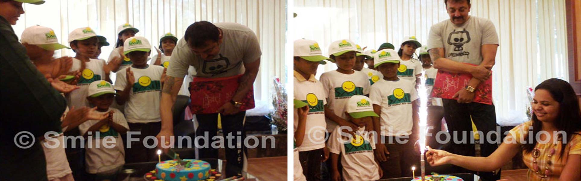 Smile Foundation children in Mumbai recently met actor Sanjay Dutt at his residence in, Mumbai to celebrate his birthday. The children were invited to be a part of a small and simple birthday celebration at his residence. Sanjay specially took time off from his busy schedule to spend a lot of time with the children.