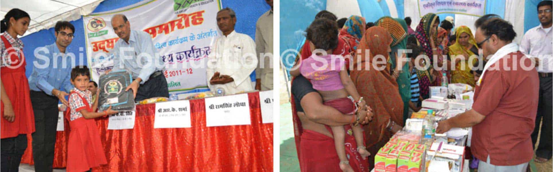 During the launch of the project a health camp was conducted and uniforms, books and bags were also distributed to the children already enrolled in the project.