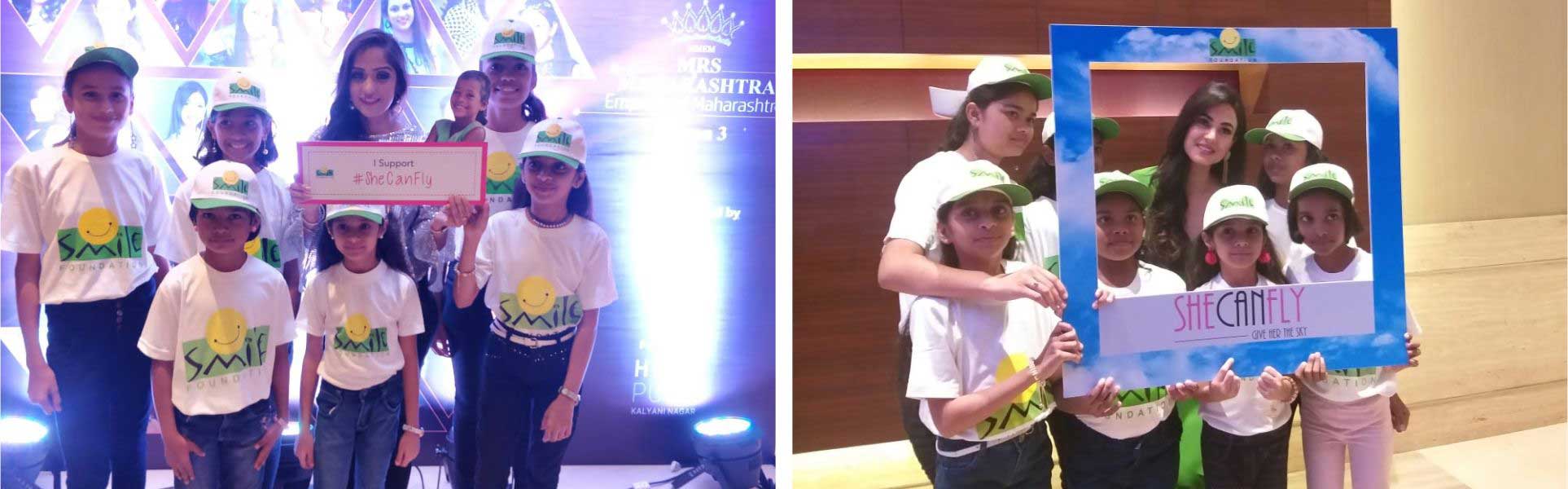Mrs. Maharashtra- Empress of Maharashtra which was held on the 25th of November in Pune joined hands with Smile Foundation to support its initiative She Can Fly which is a campaign to advocate the cause of girl child education. She Can Fly is initiative by Smile Foundation to sensitize the masses about giving equal opportunities to girls in every walk of life. Through this event Mrs. Maharashtra- Empress of Maharashtra is supporting the education for 84 kids for a year.