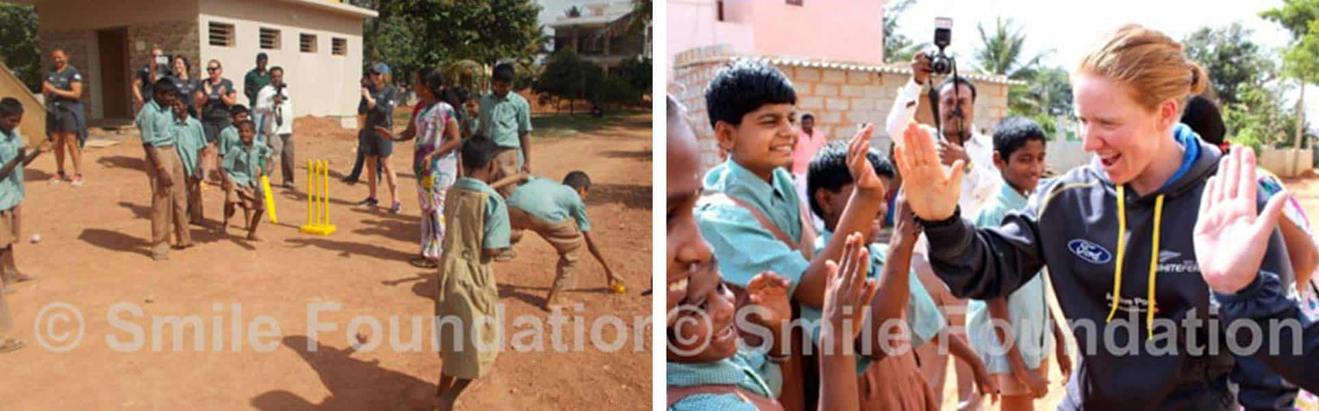New Zealand Women’s Cricket Team nicknamed White Ferns spent a memorable day with children at Smile Foundation’s Mission Education centre Vidyarana in Bangalore. The centre is home to more than 60 orphan children who are provided shelter, nutrition, education, and most importantly love and care.