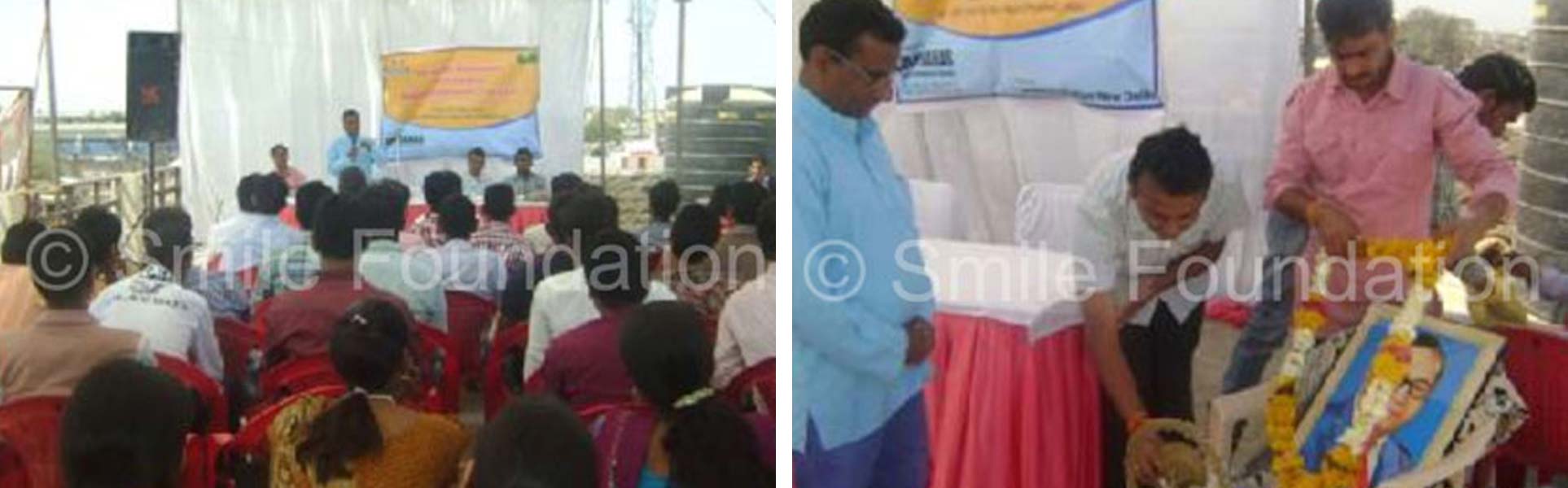 They were welcomed by all us. First all guest lit the lamp and garlanded the picture of ‘Dr. B. R. Ambedkar’. A cheering crowd of the students, teachers and guest were present there. All clapped and cheered and then the program began. First our English teacher Mr. Wahid Khan welcomed by bouquet Mr. Subodh Khandelwal Journalist of news channel 24.