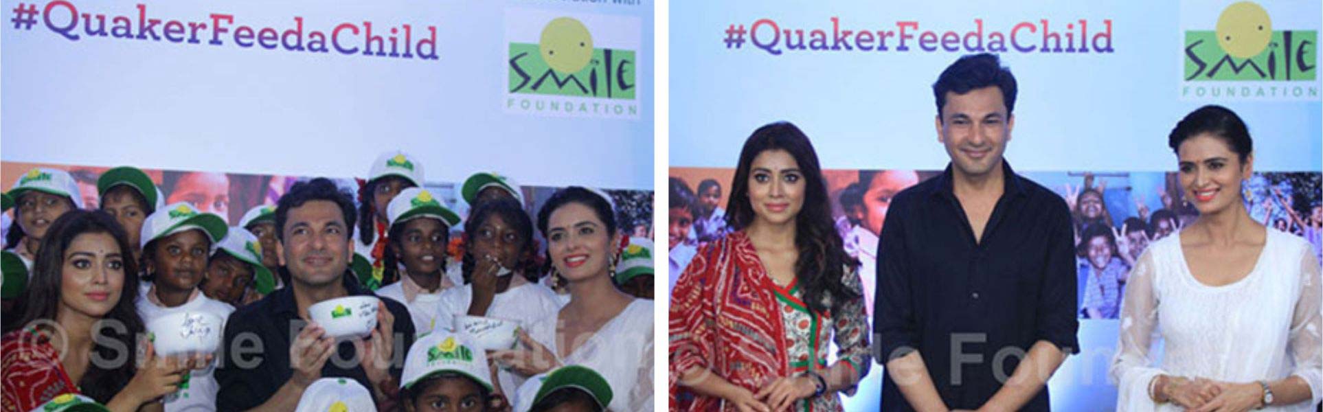 Quaker India, in association with Smile Foundation, brought its Quaker Feed A Child programme to Chennai – an initiative that aims to further the cause of nutrition support among children by providing underprivileged children with a nutritious meal. Acclaimed Chef and PepsiCo’s Nutrition Ambassador Vikas Khanna along with noted actresses Shriya Saran and Meenakshi Dixit shared a meal with children to mark the occasion.