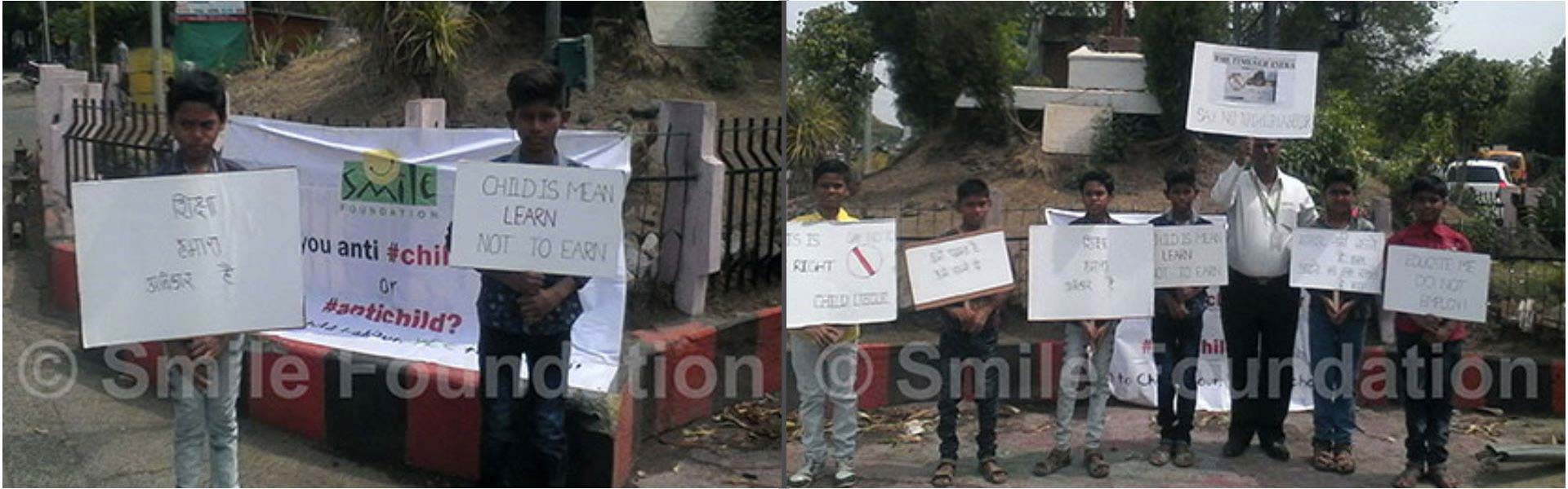 Say No to Child Labour, Say Yes to School” campaign was held at Wardha on 30th April 2017 on Sunday. Nearly 17 to 18 children from slum area of ‘Nalwadi’, Wardha participated enthusiastically in this campaign along with volunteers from Smile Foundation. The children held flash cards with various slogans related to Anti Child Labour. Other people like Mr. Sandeep Singh Thakur from Pratham Education Foundation and Mr. Sengare who is a Professor in Wardha Engineering College also joined in the campaign to support the cause.