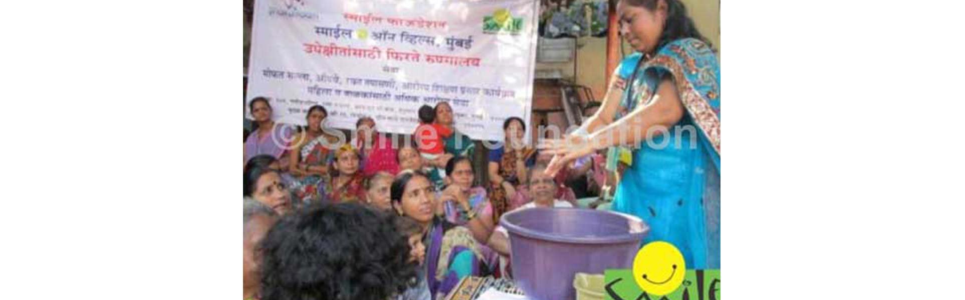 After sensitizing children on the importance of hand washing and maintaining personal hygiene under its school health programme, the Smile on Wheels project in Mumbai, Maharashtra, took a step further and included the children’s families, specially the mothers, under the initiative. Mothers play an important role in inculcating healthy habits so they were guided on how by following some basic habits in their day to day routines, they can help their families stay healthy and strong.