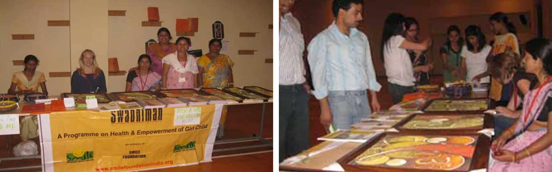Smile Foundation participated in an exhibition organisied by Nucleus Software, a software solution company based at Noida, on April 9, 2010. The team members of Swabhiman – the women and girl child empowerment programme of Smile Foundation showcased the paintings and artifacts (bead bracelets, bead necklaces, bead anklets, paper bags, etc.) at the exhibition organised inside the office premises of Nucleus Software. These paintings and objects were made by the beneficiaries who include community educators and health volunteers of the Swabhiman programme.