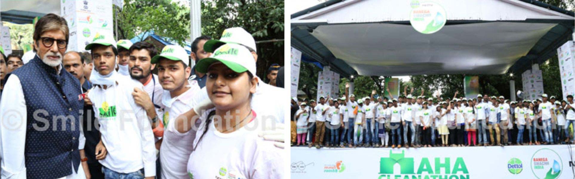 Volunteers and members of Smile Foundation participated in the recently concluded Maha Cleanathon held at Mumbai. Mega star Amitabh Bachchan , Prasoon Joshi , Shaina Nc were also seen participating in the event. Teachers, students, volunteers and other people associated with Smile Foundation have all pledged to give 2 hours a week to all its 100 Mission Education centres to spread awareness around cleanliness and hygiene. The weekly pledge is to dedicate 40000 hours across 100 Mission Education centres.