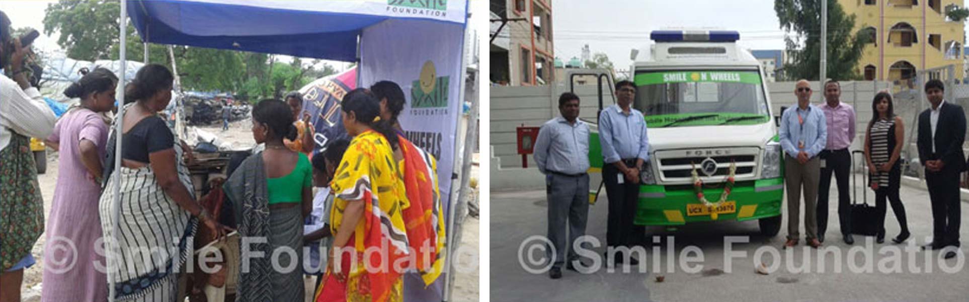 The leadership team of UHG including Sri Akula (Vice President – Technology Engineering), Nishid Sachdeva (Senior Director – Global Sourcing & Delivery Operations & Centre Head), Kshitiz Kashyap (Sr. Director – Human Resources), and Saikumar Chintareddy (Associate Director), flagged off the new Smile on Wheels, along with representatives from Smile Foundation.