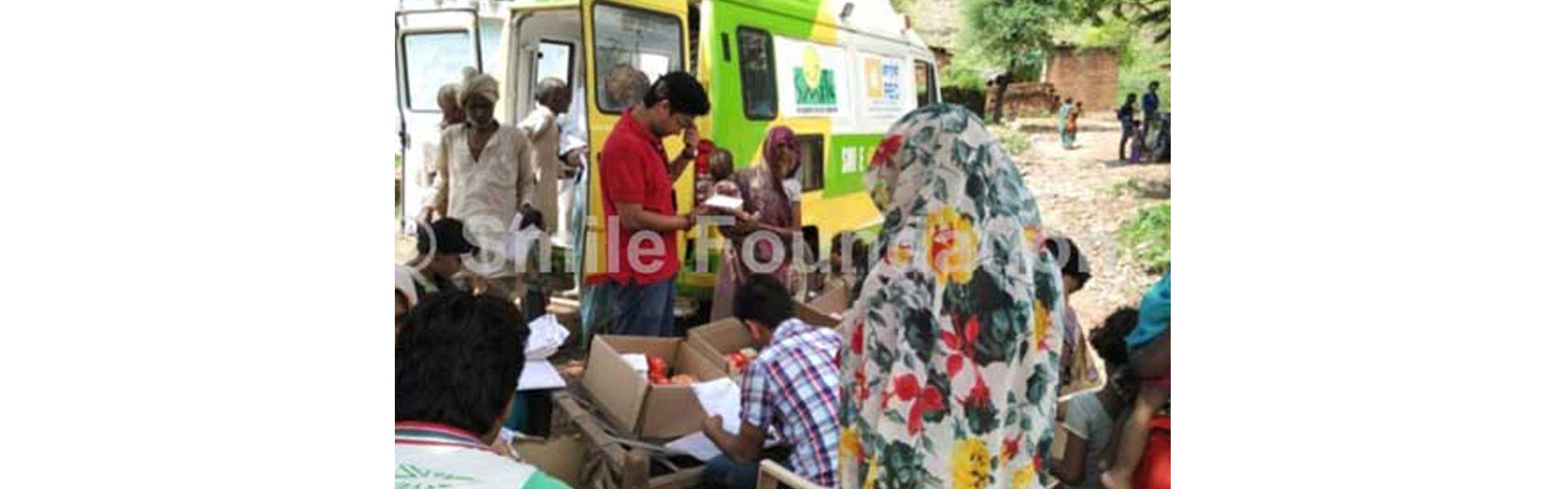 A Smile on Wheels (SoW) mobile hospital reached out to more than 250 families in Bari village of Ashok Nagar district. Working as daily wagers and small farmers, these villagers relentlessly work to feed their families and issues relating to their health often remain neglected. Many people queued to get a checkup and were found to be suffering from preventable maladies like malaria, TB, skin diseases, open cuts, untreated wounds, asthma, joint pain etc. The camp was helpful for the families as they were provided treatment that included OPD sessions, diagnosis, distribution of medicines, and referral services. Besides these, health counseling about immunization was done to generate awareness among the families.