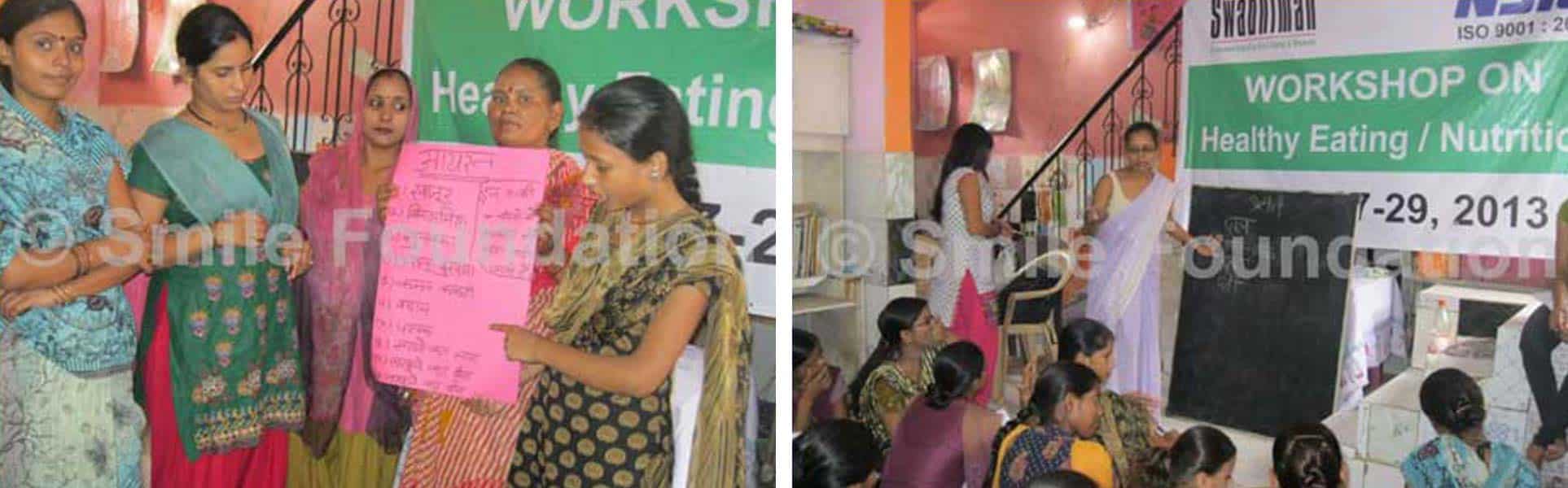 Under the Swabhiman programme, a three day workshop was conducted on Healthy Eating and Nutrition for young girls and women, at three Swabhiman centres – AADHAR, Sahyogita Samaj Vikas Sansthan and Health & Care Society. The workshop held from June 27-29, 2013, was intended to make the beneficiaries aware about the right eating habits during puberty, menstruation, pregnancy and lactation.